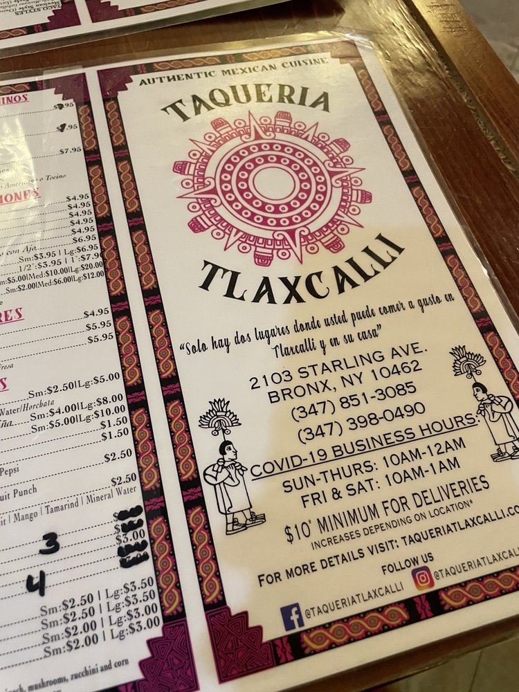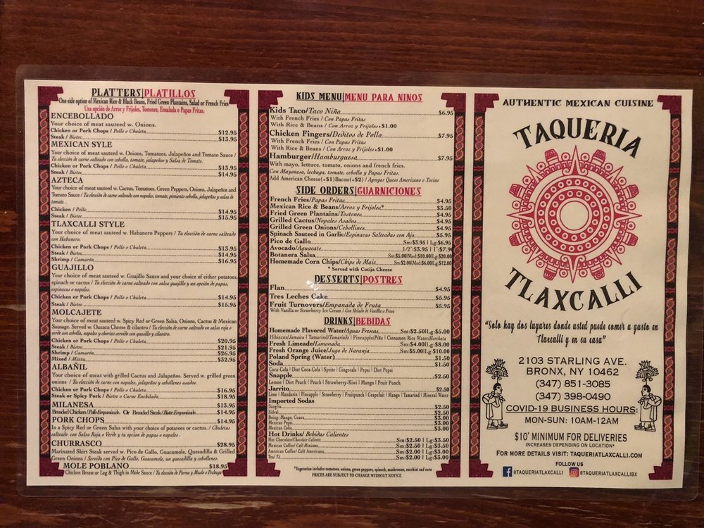 Taqueria Tlaxcalli, a Mexican gem located in Bronx, NY, offers a diverse menu with options for all palates. From traditional breakfast dishes like Huevos ala Mexicana and Huevos Rancheros to mouth-watering appetizers like Guacamole and Meatless Nachos, the flavors here will transport you to Mexico. The real stars of the show, however, are the tacos. Individually sold and served in soft corn tortillas, the Campechano Ranchero Tacos and Tacos Arabes are a must-try. The blend of steak and Mexican sausage with cactus and spicy sauce in the former, and the juicy pork with Tlaxcalli's signature sauce in the latter, will leave you craving more. With options for vegans and vegetarians, as well as a variety of amenities such as outdoor seating and Wi-Fi, Taqueria Tlaxcalli is an ideal spot for a delicious and authentic Mexican dining experience.